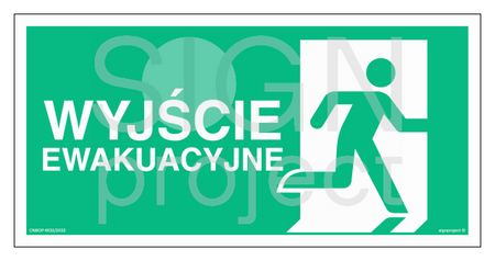 Znak „Kierunek drogi ewakuacyjnej” Znak „Kierunek drogi ewakuacyjnej” przeznaczony jest do oznaczenia drogi ewakuacyjnej w budynkach użytku publicznego. Jest on w kolorze zielonym z obramowaniem i piktogramem strzałki. Ma kształt kwadratu. Znak „Kierunek drogi ewakuacyjnej” jest łatwy w interpretacji i jednoznacznie wskazuje, w którym kierunku prowadzi droga ewakuacji w budynku. Znak „Kierunek drogi ewakuacyjnej” wykonujemy na następujących podłożach:• folia samoprzylepna fotoluminescencyjna• płyta TD fotoluminescencyjna• płyta sztywna 1mm fotoluminescencyjnaPiktogram strzałki jest widoczny w ciemności, ponieważ powstał z wykorzystaniem technologii fotoluminescencyjnej. Znak „Kierunek drogi ewakuacyjnej” dostępny jest w rozmiarach: 30 x 10 cm, 30 x 15 cm, 45 x 15 cm, 60 x 20 cm i 90 x 30 cm.