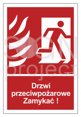 BB014 Drzwi przeciwpożarowe Zamykać! Kierunek drogi ewakuacyjnej w prawo