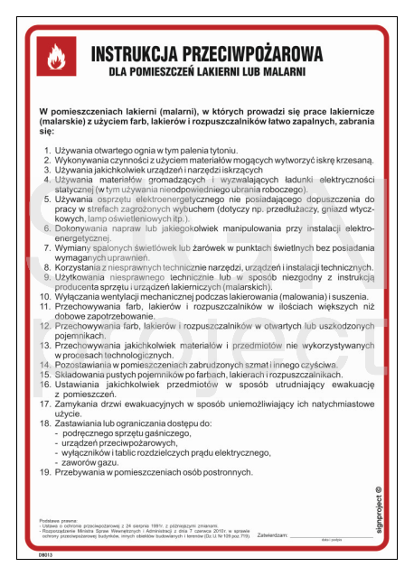 DB013 Instrukcja przeciwpożarowa dla lakierni (malarni)