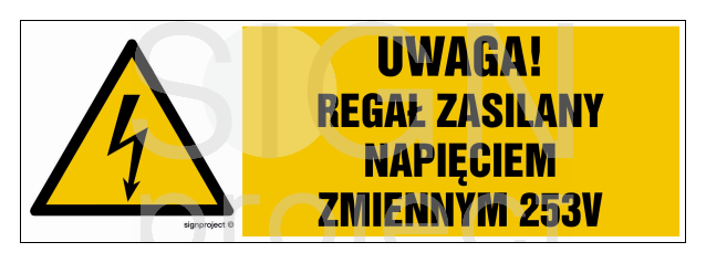 HB025 Uwaga regał zasilany napięciem zmiennym 253 V