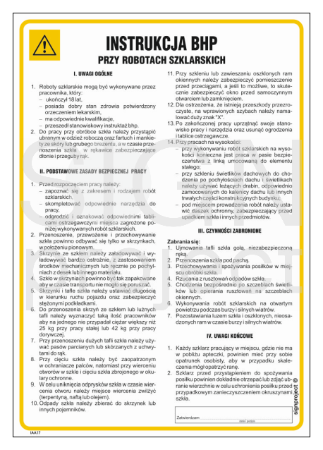 IAA17 Instrukcja BHP przy robotach szklarskich