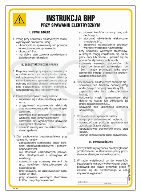 IAC20 Instrukcja BHP przy spawaniu elektrycznym