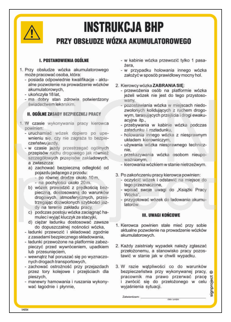 IAE04 Instrukcja BHP przy obsłudze wózka akumulatorowego