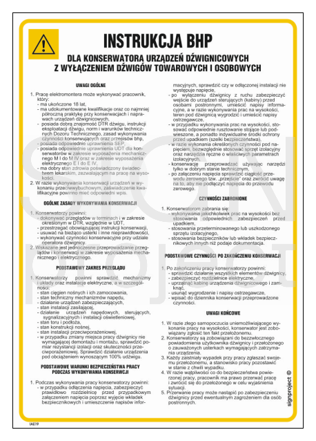 IAE19 Instrukcja BHP Dla konserwatora urządzeń dźwignicowych z wyłączeniem dźwigów towarowych i osobowych