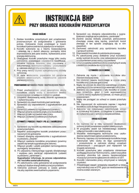 IAG16 lnstrukcja BHP przy obsłudze kociołków przechylnych