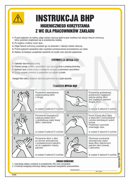IAG60 Instrukcja BHP higienicznego korzystania z wc dla pracowników zakładu
