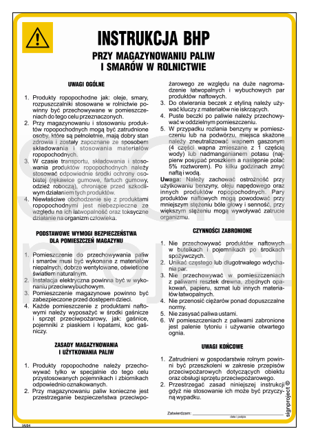 IAI04 Instrukcja BHP przy magazynowaniu paliw i smarów w rolnictwie
