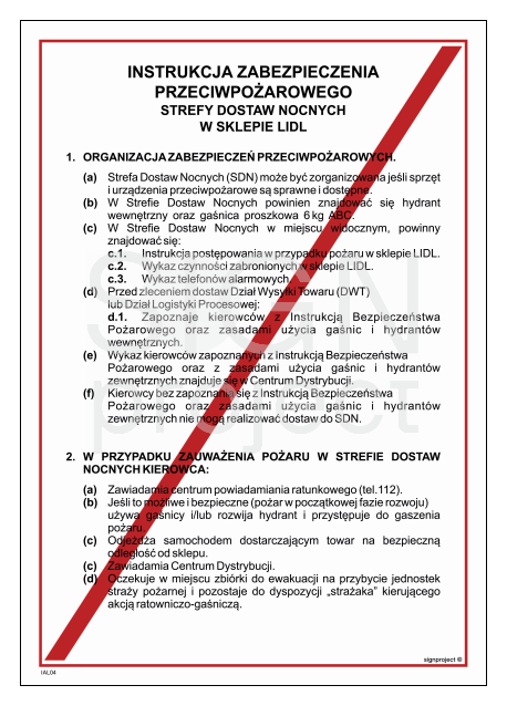 IAL04 Instrukcja Lidl - Instrukcja Zabezpieczenia Przeciwpożarowego Strefy Dostaw Nocnych w Sklepach