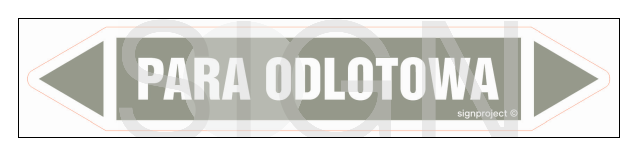 Znak „Para odlotowa” przeznaczony jest do oznakowania instalacji rurociągowych, którymi przepływa konkretna substancja, w tym przypadku para odlotowa. Jest on w formie naklejek przystosowanych do aplikacji na rury w odpowiednim miejscu. Znak „Para odlotowa” jest w szaro-białym kolorze. Kolor poszczególnych naklejek oznakowania instalacji rurociągowych pozwala na łatwą i szybką ocenę substancji, jaka przepływa przez konkretną rurę. Na znaku znajduje się napis, a także strzałki wskazujące na kierunek przepływu. Znak „Para odlotowa” dostępny jest w rozmiarach:• 14 x 2,5 cm• 22,5 x 4 cm • 33,8 x 6 cm• 56,3 x 10 cm Wykonany został na folii samoprzylepnej, dzięki czemu naklejka łatwo dopasowuje się do nierównej, zaokrąglonej powierzchni. Znak „Para odlotowa” jest trwały i odporny na uszkodzenia mechaniczne. Ilość naklejek na arkuszu