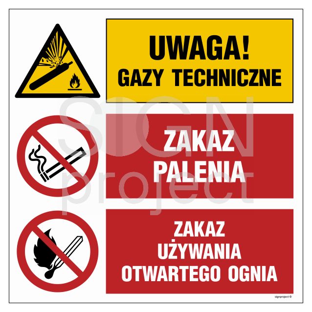 OI028 Uwaga! gazy techniczne, Zakaz palenia, Zakaz używania otwartego ognia