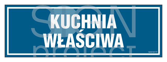 Znak „Kuchnia właściwa” wykorzystywany jest do oznaczenia konkretnego miejsca w lokalu gastronomicznym – restauracji, barze czy kawiarni. Wskazuje na lokalizację głównej kuchni. Jest to informacja zarówno dla nowych pracowników, a w przypadku większej ilości różnych pomieszczeń również dla stałych, którzy dzięki tabliczkom są w stanie szybciej i skuteczniej dotrzeć do określonego pomieszczenia. Znak „Kuchnia właściwa” znajdujący się na drzwiach jest też informacją dla klientów, że jest to miejsce służbowe. Znak „Kuchnia właściwa” ma prostokątny kształt, niebieskie tło oraz biały napis. Może mieć wymiary 15 x 5 cm, 30 x 10 cm lub 60 x 20 cm. Wykonany jest na folii samoprzylepnej lub płycie sztywnej 1 mm. Pod względem kolorystyki i wzoru współgra z innymi tablicami informacyjnymi przeznaczonymi do oznaczania pomieszczeń w lokalach gastronomicznych.