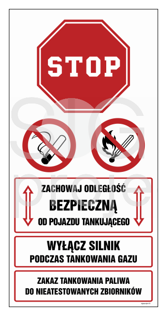 SB022 Zachowaj bezpieczną odległość od pojazdu tankującego. Wyłącz silnik podczas tankowania gazu