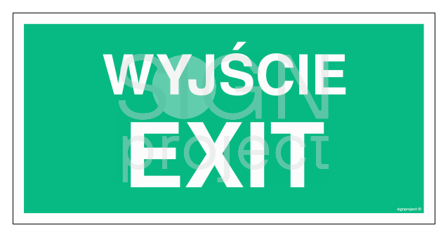 Znak „Wyjście EXIT” należy do znaków bezpieczeństwa. Jest wykorzystywany do oznakowania drogi ewakuacyjnej, a dokładnie wyjścia, którym należy kierować w sytuacji wystąpienia niebezpieczeństwa i zagrożenia wymuszającego przeprowadzenie akcji ewakuacyjnej. Znak „Wyjście EXIT” zawiera napis w dwóch językach – po polsku i angielsku, dzięki czemu jest zrozumiały dla szerszego grona odbiorców. Może być wykorzystany np. na lotnisku, dworcu autobusowym lub kolejowym, w urzędach publicznych i centrach handlowych.Znak jest w kolorze zielonym, a napis i obramowanie w białym. Może występować w kilku rozmiarach:• 20 x 10 cm• 30 x 15 cm • 40 x 20 cm • 60 x 30 cm • 80 x 40 cm • 100 x 50 cm Wykonany został na następujących podłożach: folii podłogowej, płycie TD, płycie sztywnej i folii samoprzylepnej, każdy z wykorzystaniem technologii fotoluminescencyjnej.