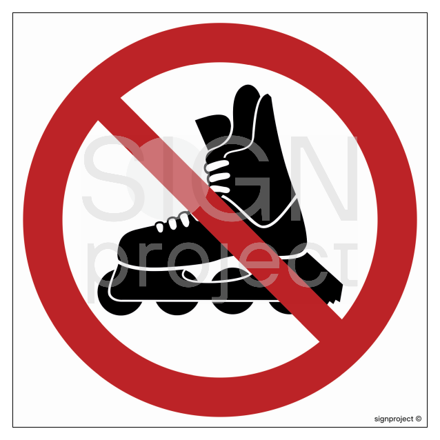 Zakaz jazdy na rolkach to znak zakazu o charakterystycznej dla tego typu oznakowania kolorystyce. Ma okrągły kształt, białe tło, czerwone obramowanie i przekreślenie, a także czarny piktogram rolki. Znak „Zakaz jazdy na rolkach” przeznaczony jest do użytku w miejscach publicznych. Jednoznacznie wskazuje, że na konkretnym obszarze jazda na rolkach jest zabroniona. Wynika to zazwyczaj z kwestii bezpieczeństwa. Znak ten stosuje się na drogach, w parkach, na terenach miejskich, ale też prywatnych. Znak „Zakaz jazdy na rolkach” dostępny jest w kilku rozmiarach: • 5 x 5 cm • 10 x 10 cm • 15 x 15 cm • 20 x 20 cm • 25 x 25 cm • 35 x 35 cm • 50 x 50 cm Wykonany jest na następujących podłożach: • Folia samoprzylepna• Folia samoprzylepna fotoluminescencyjna• Płyta sztywna 1 mm • Płyta sztywna 1 mm fotoluminescencyjna • Płyta TD fotoluminescencyjna• Folia podłogowa • Folia podłogowa fotoluminescencyjna