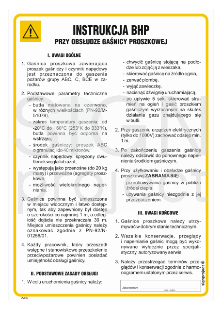 IAA15 Health and safety instructions for the use of a powder extinguisher
