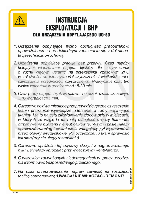 IAA23 Operating and health and safety instructions for the UO-51 dust collector