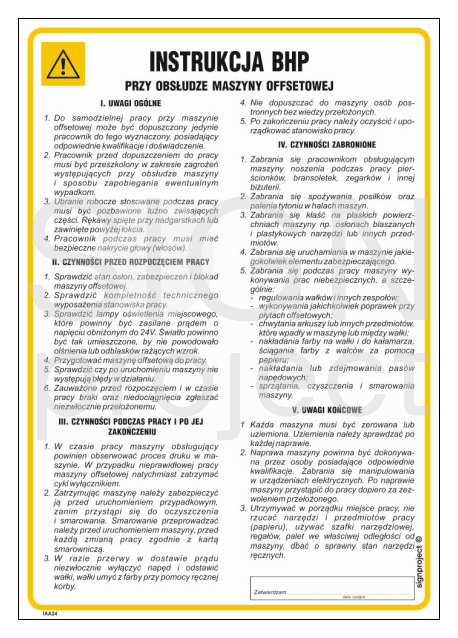 IAA24 Occupational health and safety instructions for the operation of the offset machine