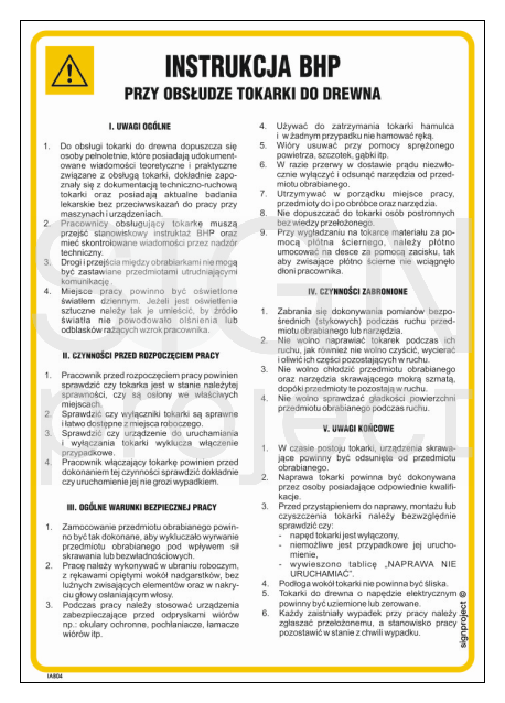 IAB04 Occupational health and safety instructions when using a wood lathe