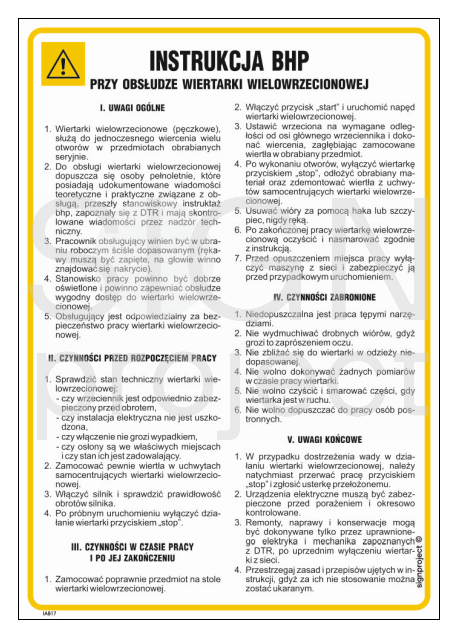 IAB17 Health and safety instructions when using a multi-spindle drilling machine