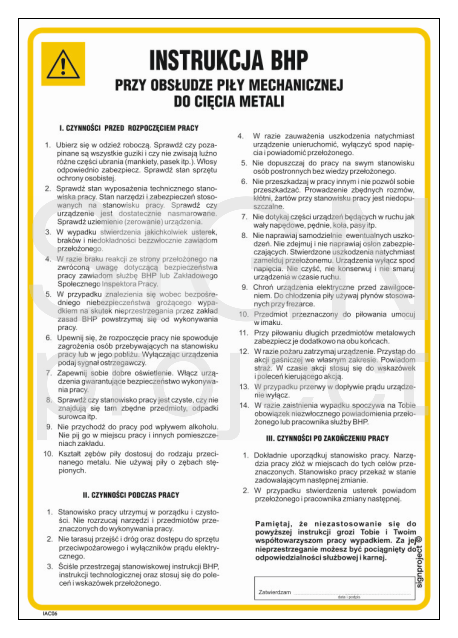 IAC06 Occupational health and safety instructions for the use of a power saw for metal cutting