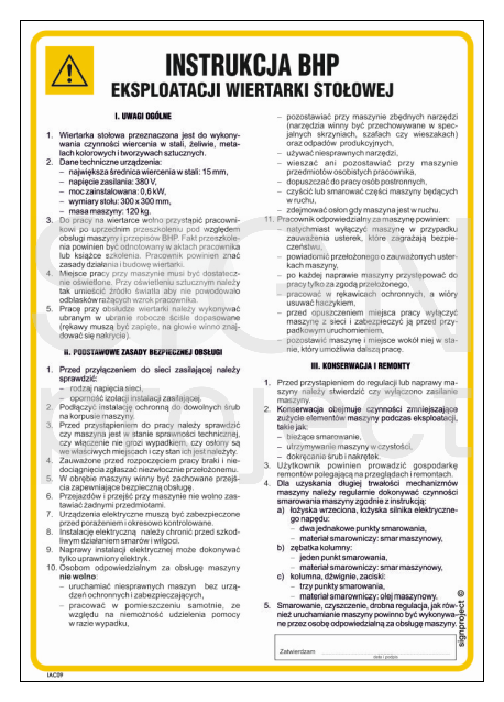 IAC09 Safety instructions for the use of a table drill