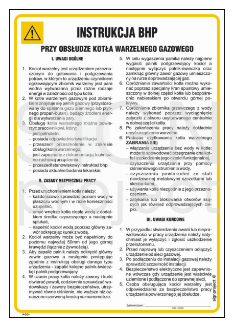 IAG04 Occupational health and safety instructions for the operation of a gas boiling boiler