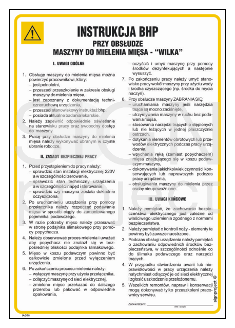 IAG18 Health and safety instructions for the use of a meat mincing machine - Wilk
