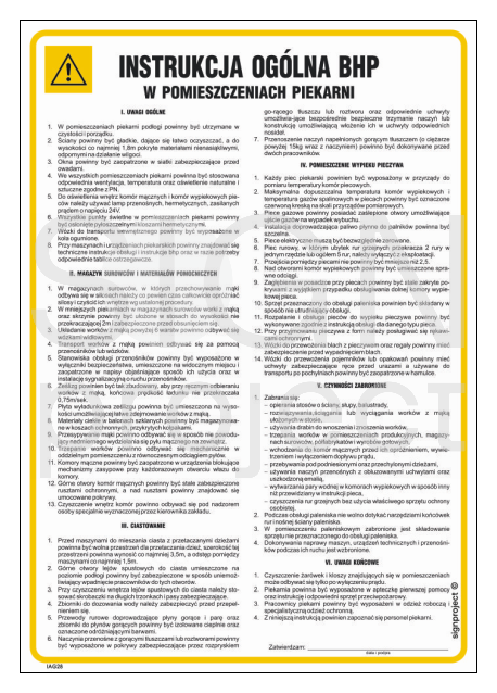 IAG28 Health and safety instructions in bakery rooms