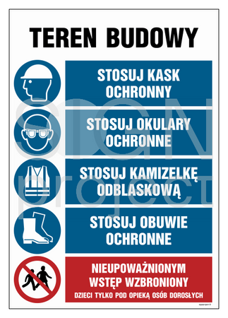 OI001 Construction site, Wear a hard hat, Wear eye protection, Wear a reflective vest, Wear both
