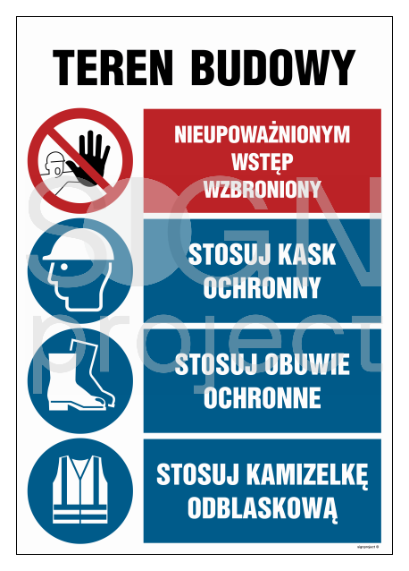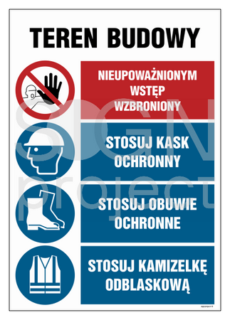 OI012 Construction site, No unauthorized access, Wear a hard hat, Wear protective shoes, Wear