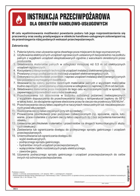 DB014 Instrukcja przeciwpożarowa dla obiektów handlowo-usługowych
